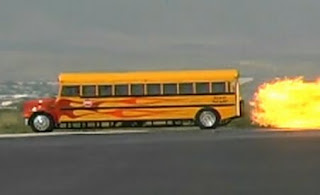 Un american amator de maşini "tunate" a avut ideea să transforme un autobuz şcolar într-un vehicul de mare viteză. El i-a montat un reactor de avion şi a reuşit să atingă 587 de kilometri pe oră. E drept că vehiculul doar seamănă cu un autobuz: americanul i-a refăcut aproape toată caroseria din metale dure, deoarece, altfel, s-ar fi făcut de mult praf.